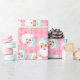 Santa Claus in Mint Green Hat Pink Retro Christmas Wrapping Paper