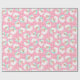 Vintage style illustrations of a Santa Claus face wearing a mint green Santa hat are set against a patterned pink background on this wrapping paper with a retro look.