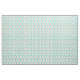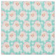 Vintage style illustrations of a Santa Claus face wearing a pink Santa hat are set against a patterned mint green background on this fabric with a retro look.