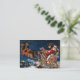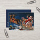 A beautiful vintage Christmas business card featuring Santa Claus riding his sleigh full of toys above a winter town.