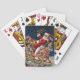 A charming vintage deck of Christmas playing cards featuring Santa Claus riding his sleigh full of toys above a winter town.