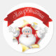 This lovely sticker features a Christmas greeting on red banner and happy Santa Claus breaking through white paper.