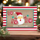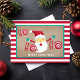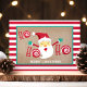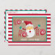 Santa Claus Peppermint Personalised Christmas Postcard. Cute Santa Claus design with a candy cane stripe background and peppermint candies.