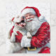 "Christmas magic is a dog’s wagging tail and Santa’s hearty laugh" and a happy illustration of Santa Claus hugging his happy cute white pitbull dog.