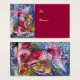 Colourful, whimsical and artistic acrylic painting ,Santa is playing harp in the moonlight ,an owl ,floral ornaments,winter plants,children toys,holly berries in bright red,green,white,blue,yellow colours. by Bulgan Lumini (c)