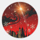 Santa Claus Reindeer and Sleigh Flying Classic Round Sticker