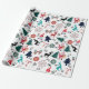 Santa Claus Reindeer Pine Trees Mittens Pattern Wrapping Paper