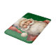A bath mat with a cute retro style illustration. Santa Claus with a bushy white beard wearing his traditional red suit.