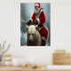 Santa Claus riding a polar bear in forest in the winter time. This is a AI generated art.