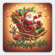 A joyful depiction of Santa Claus travelling on a sleigh pulled by a reindeer, surrounded by festive Christmas decorations and ornaments. Perfect for holiday-themed projects, Christmas celebrations, or seasonal greetings.