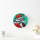 The clock did not take as long to arrive as I thought it might and was extremely well packaged. I didn't do the measurements so I didn't realize it is a little smaller than the average clock but that does not matter (just make sure you check if that's important to you).It is really nifty! It seems very solid and well made not flimsy at all. It has been going well and has kept good time in its few weeks on my wall. Nice product. Gets noticed too! Nicer in real life than the picture but true to the picture