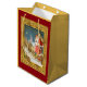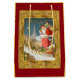 Cute Santa Claus scene saying " A Merry Christmas" in golden frame. Lovely Christmas gift bag to personalise changing background colour as well you prefer.