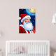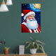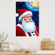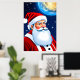 Art of Santa Claus standing outside in the night with stars and moon in the sky. He is wearing his traditional red suit and hat, and has a long white beard. Other name for Santa Claus, st. Nicholas, Kris Kringle, Father Christmas, Saint Nicholas. This is a AI generated art.