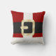 Decorate your home this holiday season with a fun Christmas throw pillow cushion that has a red Santa Claus suit with a wide black belt and a gold buckle.