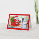 Christmas card with image of Santa Claus and his sleigh parked while using his cellphone and texting. This card sends a message of the dangers of texting while driving.