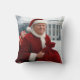Trump dressed as Santa Claus is holding a red sack filled with gifts, standing in front of the White House in a snowy setting.
