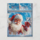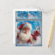 A jolly Santa Claus is seen through a frosted window, surrounded by snow. He has a wide smile and is waving with one hand, while his fluffy white beard and red outfit stand out against the blue sky. The scene captures the essence of holiday cheer and the magic of winter, with glistening snowflakes adding to the festive atmosphere. Nearby buildings can be glimpsed, enhancing the cozy, seasonal theme of this delightful moment.