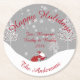 Whimsical Santa Claus with White Trees decorated with Red Ornaments and Snowflakes. Personalise with your own text.