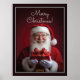 A festive design featuring Santa Claus holding a beautifully wrapped gift, set against a vibrant red background. The classic "Merry Christmas" text is prominently displayed, adding a joyful touch to the composition. This design captures the warm and cheerful spirit of Christmas in a clean, eye-catching style.