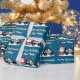 Santa Claus with police car cartoon kids Christmas Wrapping Paper . Cute Holiday design for kids. Personalized gift wrap for parents, children and babies. Funny illustration with for the winter season. Add your own name and custom seasons greetings like Merry Christmas or Happy Holidays. Also fun for Christmas baby shower party. Customizable background color. Fun law enforcement design for boys and girls.