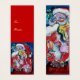 Colourful, whimsical and artistic acrylic painting ,Santa is playing violin in the snowy winter night ,an owl ,floral ornaments,winter plants, holly berries in bright red,green,white,blue,yellow colours.