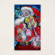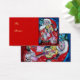 Colourful, whimsical and artistic acrylic painting ,Santa is playing violin in the snowy winter night ,an owl ,floral ornaments,winter plants, holly berries in bright red,green,white,blue,yellow colours.