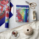 Colourful, whimsical and artistic acrylic painting ,Santa is playing violin in the snowy winter night ,an owl ,floral ornaments,winter plants, holly berries in bright red,green,white,blue,yellow colours. by Bulgan Lumini (c)