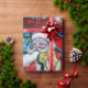 Colourful, whimsical and artistic acrylic painting ,Santa is playing violin in the snowy winter night ,an owl ,floral ornaments,winter plants, holly berries in bright red,green,white,blue,yellow colours. by Bulgan Lumini (c)