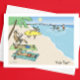 Humourous Christmas Card. Cartoon of Santa and his reindeer on a sunny tropical beach vacation. Shirtless Santa Clause in red swimming trunks is riding the waves. One reindeer is running with a surfboard. Other reindeer are tanning or reading on the sand. The title is “Yule Tide.” Inside of card: “warmest holiday wishes.” The inside greeting can be personalised. A funny holiday card great for personal or business mailings. Visit Jenn's Doodle World for more Xmas cartoon cards and funny gifts.