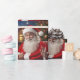 Wrapping paper featuring an up close image of Santa Clause who is smiling and waving, while sitting in front of a Christmas Tree. This design was created by Debbie Quick from Debs Creative Images: www.debscreativeimages.com
