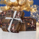 Wrapping paper featuring Santa Clause sitting in a decorated room with a Christmas Tree and a fireplace. This design was created by Debbie Quick from Debs Creative Images: www.debscreativeimages.com