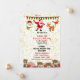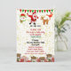 A cute HOLLY JOLLY Christmas Birthday Party Invitation Announcement for your Birthday girl turning 1/Any age. The illustration has a bunting and Gifts border with Santa making an announcement with his folks - Reindeer, Bird, Snowman. The TEXT is customisable.