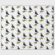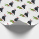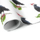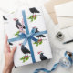 A jaunty crow wearing a Santa hat holds a sprig of holly on this holiday wrapping paper.