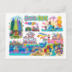 Santa Cruz Illustrated Map Boardwalk Beach Surfing Postcard