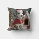 The cushion of a Dalmatian doll dressed in a Santa costume for Christmas creates a happy Christmas atmosphere in the indoor space.