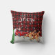 This festive pillow features a buffalo plaid pattern and a unique cartoon image of Santa driving a red sports car pulled by reindeer by LeahG. On the reverse is a santa and his reindeer silhouette graphic against an image of the moon with a text field for you to add your own details as desired to create a unique Christmas decoration or gift.