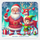 Santa, Elf, and Reindeer in a Festive Christmas Square Sticker