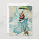 Santa sips a beer on an iceberg under a beach umbrella with one of his reindeer on a much needed vacation