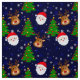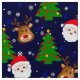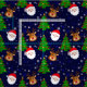 Happy santa claus, reindeer, decorated christmas tree, and snow christmas fabric pattern