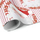Santa Face Circles-Santa's sporting is red Santa hat and gold glitter glasses. Red and gold text circles around and reads: Ho Ho Ho, Merry Christmas! The background is red and white pinstripes. This Santa wrapping is available with assorted background colours. It's also available as an allover Santa without the circled text.