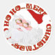 Santa Face Circles-Santa's sporting is red Santa hat and gold glitter glasses. Red and gold text circles around and reads: Ho Ho Ho, Merry Christmas! The background is solid white. This Santa sticker is available with assorted background colours. Coordinating Zazzle party supplies is available.