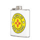 Well made flask, a little better than I had expected. Flask came in clear plastic box which gave it a nice presentation when I took it out of the zazzle packaging. Image is not printed on flask but on sticker. Don't know how this will hold up I haven't used it yet. This would make a Great gift! I plan to purchase more for friends! Cheers. I thought a little brighter than computer. Very crisp, writing wasn't