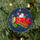 Cute Christmas Santa flying an airplane with a sack full of gifts and the propeller has red and white stripes ornament.