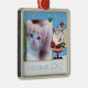 A smiling Santa Claus cartoon figure stands next to a "frame" for your photo. There is a blue and white snowy winter background. You can change the font style and size if needed.