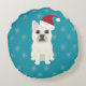 Santa Frenchie, Snowflakes Blue Round Cushion