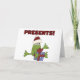 Santa Frog holiday T-shirts, sweatshirts, tote bags, cards, stickers, mugs, magnets, keychains, and other holiday apparel and gifts featuring a frog in a Santa hat, presents, and text that reads "Presents!".