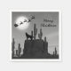 This Merry Christmas holiday paper napkin design features a silhouette wolf howling at the full moon with Santa flying his sleigh. The background is a southwestern desert scene with cacti. -