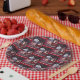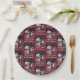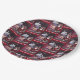 A plate with a funny cartoon Santa being stopped by the police because Rudolph, the red nosed reindeer, shines his nose too bright.