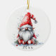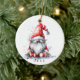 Bring whimsy and holiday cheer to your tree with this round ceramic Christmas ornament, featuring a delightful watercolor illustration of a festive Christmas gnome. Dressed in a cosy red hat, nestled among pine sprigs and snowflakes, this charming little character captures the playful spirit of the season. The soft watercolor style adds a hand-crafted touch that blends beautifully with both modern and traditional holiday décor.