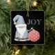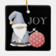 Cute Santa Gnome in Blue with red ornament and JOY type on the front and Name and Year on the back, ceramic ornament.